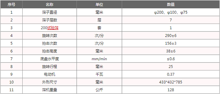 拍擊篩技術參數