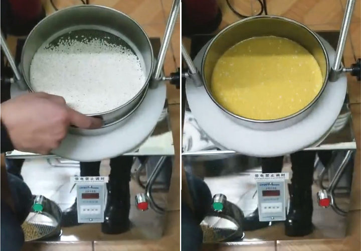 3、把標準篩框按孔徑從小到大,從下到上依次疊放到篩框底座上。