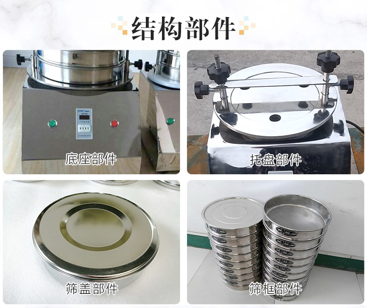 標準藥典篩上部由固定黃銅螺帽、壓板、篩蓋、篩框、中篩框、篩底、等距調節桿等等部件組成,所有部件均是選用優質SUS304不銹鋼精制加工而成,相互之間配做靈活、互換性能高、堪稱篩框之標準試驗篩框。