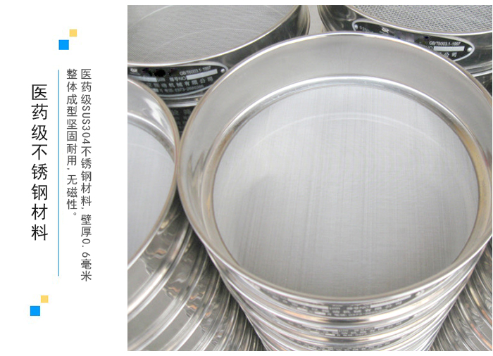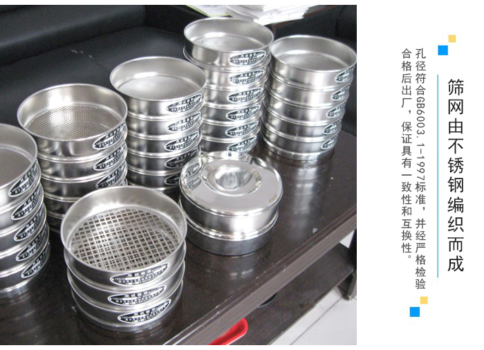 3、篩網為不銹鋼編織網,網眼符合GB6003.1-1997標準,經工具顯微鏡、投影儀等設備檢驗合格后使用,可確保藥典同型號標準任何時候產生的篩子都具有一致性和相互性。